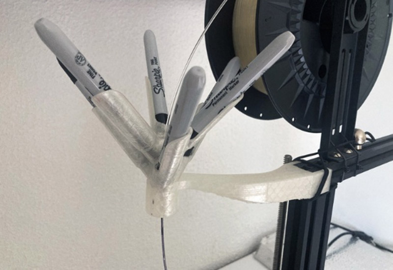 Ali je mogoče tiskati večbarvne 3D predmete brez dragih tiskalnikov in specializiranih filamentov? V tokratnem izidu objavljamo raziskavo, v kateri smo preizkusili preprosto, a inovativno rešitev barvanja običajnega prozornega PLA filamenta z alkoholnimi markerji že pred samim iztiskavanjem. S pomočjo nastavka, ki usmerja filament skozi markerje, smo med tiskanjem dosegli različne barvne odtenke in prehode, vse to z uporabo enega samega termoplastičnega filamenta.